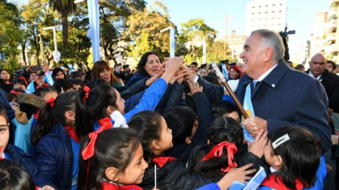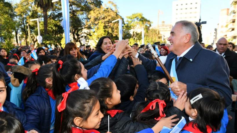 El gobernador, Osvaldo Jaldo, participó esta mañana del acto por el Día de la Bandera Nacional y la conmemoración del 205° aniversario del paso a la inmortalidad del general Manuel Belgrano, que se realizó en la explanada de Casa de Gobierno frente a la Plaza Independencia.