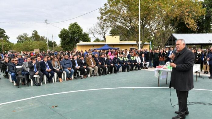En la oportunidad, el jefe del Poder Ejecutivo provincial también inauguró un moderno playón polideportivo donde se brindarán actividades recreativas y culturales para todas las edades. También entregó pelotas y camisetas de futbol.