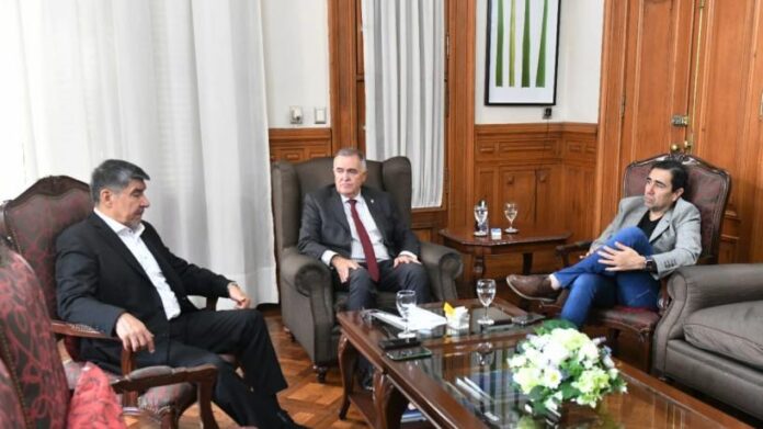 El gobernador Osvaldo Jaldo recibió esta mañana en su despacho al vicegobernador Meguel Acevedo y el presidente subrogante del Parlamento, Sergio Mansilla.