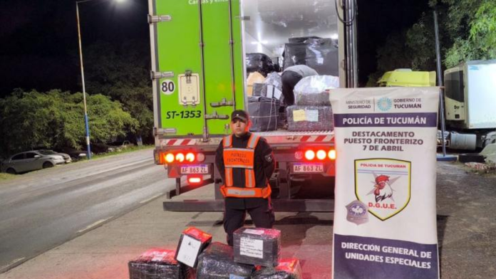Por otro lado, los efectivos del Puesto Fronterizo Cabo Vallejo, ubicado en la ruta N° 9, incautaron diez bultos de mercadería de origen extranjero con fines de comercialización que eran trasladados por un camión que provenía desde la localidad de Orán, Salta, con destino a esta provincia.
