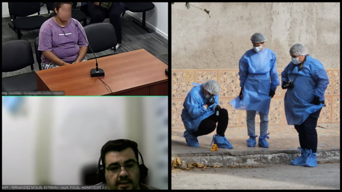 En esta oportunidad, el auxiliar de fiscal Miguel Fernández expuso la teoría del caso. Dijo que, a las 13:00 horas aproximadamente, en calle Salas y Valdez al 1500, la acusada se hizo presente empuñando un cuchillo tipo carnicero chico y se inició una fuerte discusión con su ex pareja y su ex suegra. A continuación, Arroyo (sería primo del ex) intervino para separar a la señora y a la acusada, momento en que el joven perdió el equilibrio y cayó al suelo.