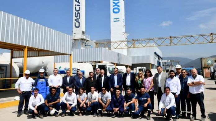 El intendente Carlos Gallía remarcó la llegada de nueva maquinaria proveniente de Alemania, Suecia y China “que viene a aumentar la capacidad de producción de la planta de oxígeno y poder abastecer mercados otros mercados, además del local”.