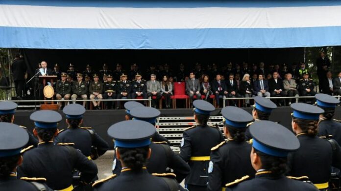 Jaldo aseguró: “Venimos poniendo esfuerzo y sacrificio y sobre todo tomar decisiones para mejorar la Policía de Tucumán todos los días. A nivel personal, cada uno de ustedes y familia, en equipamiento, en tecnología, porque el delito va mutando, avanzando y es por eso que nosotros como institución de la misma manera también nos tenemos que ir profesionalizando y disponer de elementos necesarios para dar una batalla de igual a igual a aquellos que delinquen e incumplen con la ley”.