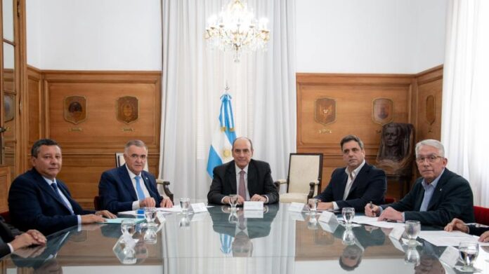 El gobernador Osvaldo Jaldo firmó este jueves un convenio con el jefe de Gabinete, Guillermo Francos, para la reactivación de obras que se desarrollan en Tucumán. Del encuentro que se realizó en Casa Rosada participaron también el secretario del Interior, Lisandro Catalán; el secretario de Obras Públicas, Luis Giovine; y el ministro del Interior, Darío Monteros.