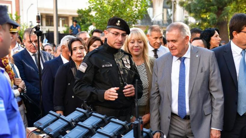 En la entrega de equipamiento y 15 vehículos para la Policía y el Servicio Penitenciario, el gobernador Osvaldo Jaldo realizó un balance de este año y medio de gestión en materia de seguridad.