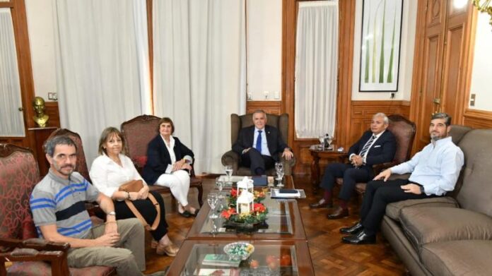 El gobernador, Osvaldo Jaldo, recibió esta mañana en su despacho de la Casa de Gobierno a la Comisión para la Salvaguarda del Patrimonio Cultural de Tucumán, presidida por la arquitecta Olga Paterlini, quienes estuvieron acompañados por el vicepresidente segundo de la Legislatura, Alfredo Toscano. El objetivo del encuentro fue solicitar apoyo para finalizar los trabajos de la envolvente exterior de la Iglesia San Francisco.