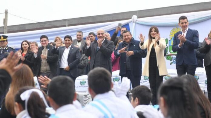 El mandatario estuvo acompañado por el intendente, Darío Monteros; el legislador e intendente electo, Gonzalo Monteros; el jefe regional del Ente Nacional de Obras Hídricas de Saneamiento (Enohsa), Gerónimo Vargas Aignasse; Gladys Medina, secretaria de Atención a Familias en Riesgo Social; el subjefe de Policía, Sergio Sobrecasa; ediles del Concejo Deliberante de Banda del Río Salí y delegados comunales.