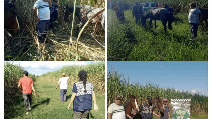 Tras la denuncia, un equipo de esa División Especial inició tareas de huellaje y averiguaciones y en consecuencia, “luego de un arduo trabajo de búsqueda, donde se realizó un recorrido de más de 15 kilómetros, en la localidad de Manuela Pedraza, encontramos los animales atados en medio de una plantación de caña de azúcar, donde habrían sido dejados por los autores”, dijo Bordón.