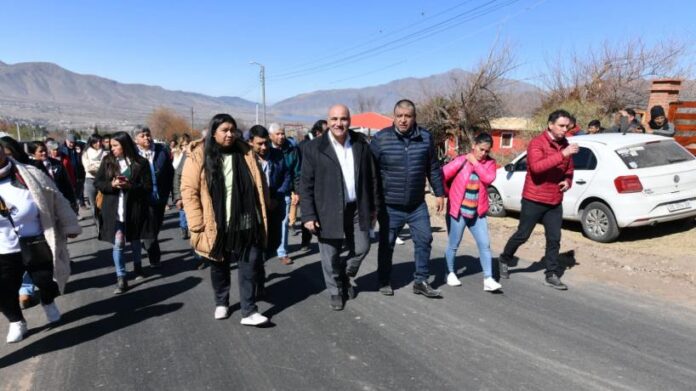 Posteriormente, Manzur y Caliva se dirigieron a Las Tacanas, donde recorrieron las obras de pavimentación de 800 metros en la zona de El Lambedero. Además, visitaron las obras del Centro Comunitario de Las Tacanas que concluirán en noviembre y la Capilla María Reina de la Paz. Allí las autoridades fueron recibidas por Fernanda Tejada, delegada de base de las comunidades indígenas.