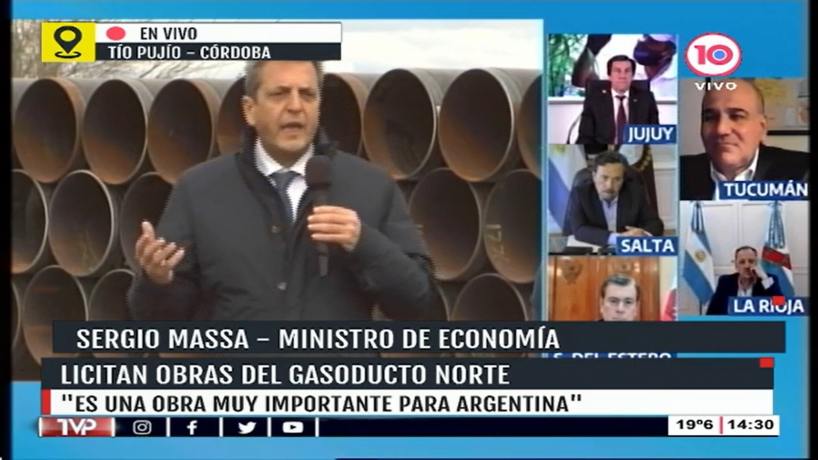 El ministro de Economía y candidato a presidente por Unión por la Patria, Sergio Massa, lanzó la licitación para la obra de reversión del Gasoducto Norte, con la cual buscará dar continuidad a la política de infraestructura energética destinada a potenciar la capacidad de producción de Vaca Muerta.