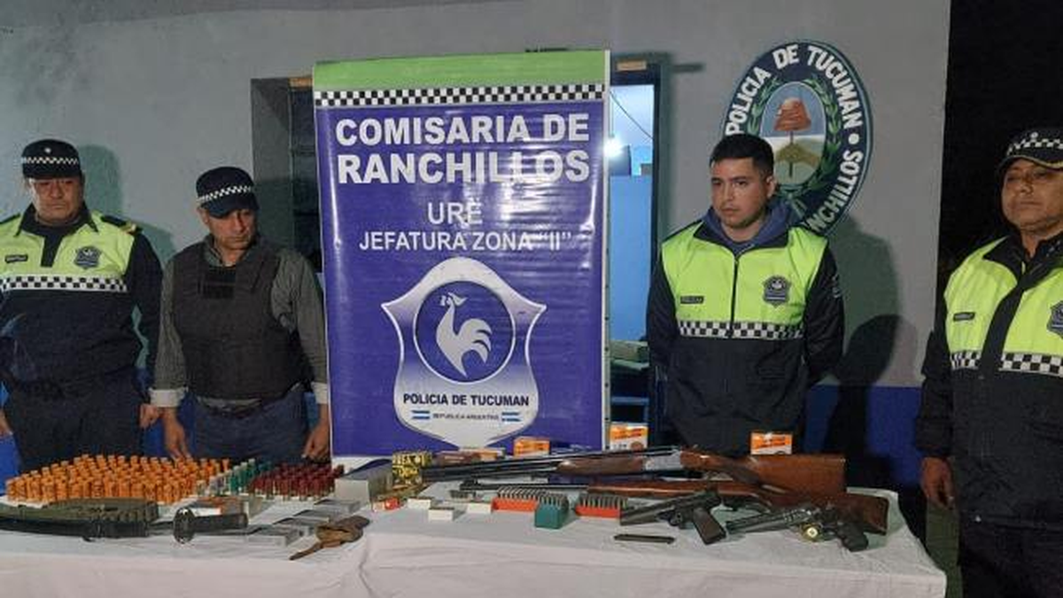 El domingo pasado se recepcionó en esta dependencia policial una denuncia de amenazas agravadas con el uso de armas de fuego. Por ello, personal a mi cargo realizó una investigación y solicitó allanamientos que fueron autorizados este martes en la localidad de Los Pereyra. Allí, al ingresar a la vivienda, con la presencia de testigos, se halló una gran cantidad de armas de fuego. Se trata de una escopeta calibre 270, una carabina calibre 22, una pistola calibre 22 largo, y un revólver Magnun 357; además 700 cartuchos de diferentes calibres”, detalló el Comisario Principal Cristian Herrera, jefe de la Comisaría de Ranchillos.