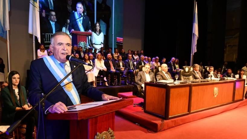 “Son momentos de grandes desafíos, pero quienes tenemos la responsabilidad institucional tenemos que asumir el rol que los ciudadanos nos han encomendado a través del voto, de ese voto que gracias a la democracia podemos emitir”, inició su primer discurso como gobernador, Osvaldo Jaldo, desde el escenario del teatro San Martín.