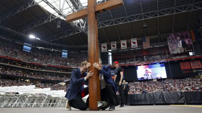 Erika Kirk, viuda del activista, también estuvo presente y asumió simbólicamente el rol de nueva directora ejecutiva de Turning Point, la organización que fundó su esposo para promover la libertad de expresión y los valores conservadores en universidades y entre jóvenes.