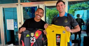 En su cuenta de Instagram, el arquero de Aston Villa posteó en sus historias una foto donde se lo ve junto a Ignacio Arce, de gran paso por el “Santo”, y actual arquero de Deportivo Riestra. En la foto, se ve que intercambiaron camisetas: “Dibu” se llevó una de “Malevo”, y Arce una de la Selección. Ambas, con dedicatorias escritas a mano.